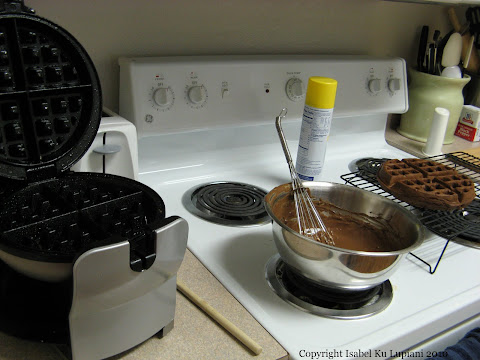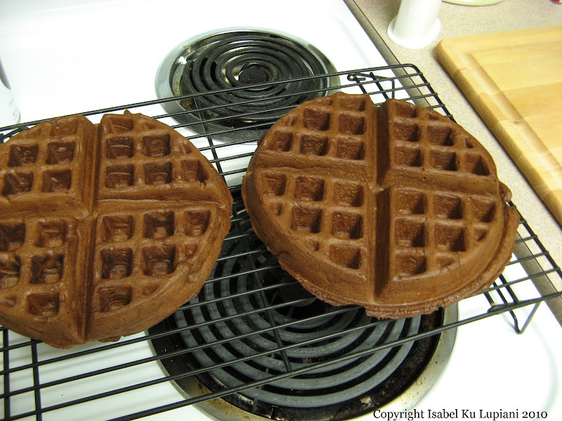 食譜來源 : Isabel Tag : 巧克力,甜點,早餐,鬆餅,比利時 如果家裡有鬆餅機的話,利用市售的鬆餅粉和可可粉,用這個食譜的簡單配方就可以變化出巧克力鬆餅。烤好的鬆餅灑上一層糖粉,再用一點新鮮薄荷葉和草莓裝飾,就像五星級飯店浪漫早餐。可以作為情人節,紀念日或生日等特別節日早餐。作為下午茶或甜點也不錯。 按照你喜歡的市售鬆餅粉配方,每杯鬆餅粉(或是自己從頭做的話,麵粉),添加 - 1/4到3/8杯(或4至6大匙)天然無糖可可粉(烘焙用),以及 - 1/4到3/8杯(或4至6大匙),白砂糖或代糖(如Splenda)(基本上是等量的可可和糖),以及 - 2-4額外大匙水。 先加2大匙開始,然後逐漸增加,調整到適當濃度(應該跟沒有加可可粉和糖的時候差不多濃度)。通常為 1/4杯可可粉/2大匙糖,2大匙水。 可可粉的量取決於個人口味。我個人通常加五大匙可可粉,如果想要濃厚巧克力口味的話,加六大匙 。(我用吉拉德里高級烘焙天然無糖可可粉Ghirardelli Premium Baking Natural Unsweetened Cocoa Powder,供參考)。 |