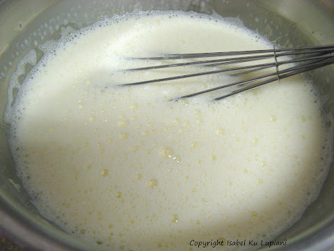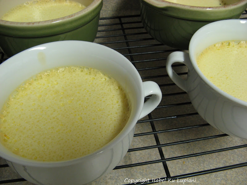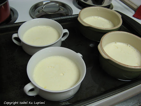 關鍵字 Tags: 法國, 烤布丁, 烤布蕾, 雞蛋, 甜點 這次試做的是知名法國甜點-焦糖烤布蕾. 是一種類似超香濃雞蛋牛奶布丁的甜點, 上面再加上一層脆脆的焦糖, 增添不同的層次和口感. 其實材料和做法都蠻容易的, 只是有點費時, 要有點耐心. 參考的是美國電視名廚Ina Garten的食譜, 做起來蠻成功的. 大家也來試試吧! 食譜來源: 參考Ina Garten食譜 準備時間: 10 分鐘 煮時間: 45 分鐘 全部份量: 四人份(4個約8盎司/240cc/1杯的烤布蕾) 材料: 1個大的全蛋, 及4個大的蛋黃 1/2杯白糖(布丁體用) 4-6大匙白糖(每一個布丁1-1.5大匙糖用來作上面的焦糖) 3杯鮮奶油(heavy whipping cream) 1小匙香草精(vanilla extract) 作法: 1. 烤箱預熱至300度F/150度C. 2. 準備一個有深度的烤盤(大小足夠放入4個約8盎司/240cc/1杯的烤杯, 且深度足夠注入約2-3公分/1寸的熱開水, 然後不會太滿, 以免進出烤箱的時候容易溢出). 3. 爐子上或熱水壺煮一些沸水備用. 烤杯排入烤盤備用. 4. 蛋, 蛋黃, 1/2杯白糖放入大碗中, 攪拌至混合均勻. 5. 鮮奶油入小鍋, 中小火慢慢加熱到手試溫度會燙, 但還不到沸騰(為安全也可以用溫度計試溫). 6. 熱的鮮奶油分3, 4次慢慢分次加入4. 每加一份攪拌均勻再加下一份, 至全部混合均勻為止. 7. 6用一個大勺子均勻舀入4個烤杯. 烤盤和烤杯之間的空間注入約2-3公分/1寸的熱開水. 小心把烤盤送入烤箱, 烤約45-50分鐘, 直到布丁體中間輕搖感覺凝固為止. 8. 烤杯從熱水中移出, 室溫放涼, 再入冰箱冷藏. 9. 上桌之前每一布丁表面灑上1-1.5大匙白糖. 如果有噴槍, 用噴槍融化糖到焦糖顏色為止. 沒有噴槍的話, 送入烤箱只開上火(broiler)烤幾分鐘, 到糖融化到焦糖顏色為止. 稍微放涼至焦糖凝固. 完成! *一杯 = 240ml = 8oz *一大匙 15 ml, 一小匙 5 ml. |