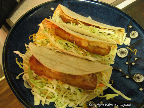 關鍵字 Tags: 墨西哥, 捲餅, 玉米, 魚排, 辣椒 這是一道懶人菜~由超市買的現成材料組合起來就好了, 完全美式加州及德州墨西哥菜的FU. 這道捲餅的調味關鍵在於醬料~是用罐裝墨西哥煙熏辣椒(chipotle peppers in adobo sauce)為主軸調的酸奶醬, 兼具辣, 酸, 微甜, 煙熏風味, 是我有一次看美國電視美食頻道, 一間知名墨西哥餐廳主廚示範得來的靈感. 和一般平常吃的牛肉taco不一樣的風味. 食譜來源: Isabel 準備時間: 5 分鐘 煮時間: 35 分鐘 全部份量: 兩至三人份 材料: 六張小的市售白或黃玉米軟式墨西哥捲餅(white/yellow corn tortilla) 6片市售冷凍炸魚排 1包市售高麗菜絲(在美國超市買cole slaw mix就可), 或是自己切絲也可以 1杯巧達起士絲(shredded cheddar cheese) 醬料: 約1/2杯低脂酸奶油(sour cream) 約1/2杯低脂美乃滋 2個罐裝墨西哥煙熏辣椒(chipotle peppers in adobo sauce), 切半, 把籽除去, 切碎, 加上1大匙罐頭的醬汁 1~2大匙切碎的新鮮洋蔥(用1/2大匙乾的洋蔥也可以) 1大匙糖 1小匙Mrs. Dash Southwest Chipotle seasoning blend, 可省略 作法: 1. 所有醬料材料混合均勻備用. 2. 冷凍炸魚排依包裝指示烤或炸好. 3. 墨西哥捲餅用水濕潤的廚房紙巾包好, 入微波爐加熱20~30秒(此步可省). 4. 組合: 每張餅抹上醬料, 放上一層高麗菜絲, 1片魚排, 及少許起絲, 折起. 每一人份2~3個捲餅. *一杯 = 240ml = 8oz *一大匙 15 ml, 一小匙 5 ml. |