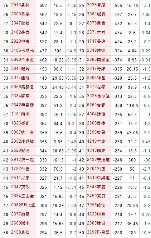 上市主力進出排行榜(時間 101-03-26