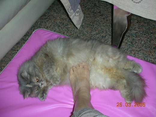 夏天到了,長毛的妙妙也要涼快一夏.週6M帶貓貓去洗澡,順便請獸醫師幫她剃毛毛.貓貓來到我們家6年來還是第一次幫他剃毛過暑假.讓我真的好期待..... 沒多久,M就打電話回來報價,貓貓剃毛要350,加上洗澡要350,一共是700塊.另外還要打麻醉針.....嗯~~好貴!!寵物的錢快比女人的錢好賺了. 晚上貓貓終於回到家了,明知到剃光毛後的長毛波斯應該會很醜,已經做好萬全的心理建設了,但是剛貓貓走出籠子的那個剎那,還是讓心難過到受不了~~真的很醜!!~~醜到我都想直接跳過今天,跳過明天,直到他毛毛再度長長的那天....."慘不忍睹"就是當時的心情.最慘的是看到貓貓麻藥未退走路癲頗的樣子,讓我差點哭出來.質問M獸醫有沒有說什麼?小貓怎會這樣?麻藥打太重會死人的,小貓沒事吧??.......不忍看的我,趕緊跑開..... 蟑螂老鼠等這些動物對我來說都免疫,唯獨怕"壁虎",白白軟軟又沒毛的東西,尾巴斷掉還會動....光想到就讓我忍不住想要尖叫.剃完毛毛的醜小貓就像"放大"千百倍的壁虎,讓我胃抽筋. 人家都說剃毛後的貓都會搞自閉,偏偏我們家的貓貓還是跟往常一樣跑來跑去喵喵叫.一點都沒垂頭喪氣自閉的樣子.我問M,M回答也很妙,他說貓貓根本不知道他自己發生什麼事吧?! 忽然想到~~對吼,忘了拿鏡子給貓貓照一下.