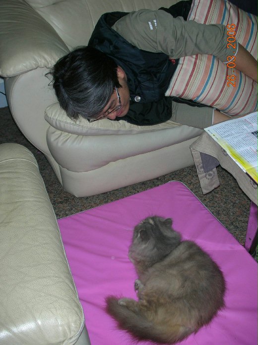四月已經進入尾聲了,今天看了日誌才注意到我們家阿妙似乎只有不到一個禮拜的時間是正常的之外,整個四月幾乎都在發情中.看樣子好像還會持續到5月~~6月的樣子.....真是令人苦惱..... 這樣正常嗎?! 應該是不正常的吧? 記得她以前都沒發情這麼久的? 還是之前沒太注意她,所以根本不知道她的生理週期. 每晚回到家,阿妙就用呻吟中帶著飢餓的聲音迎接我.好像在跟我抗議我虐囚,要我趕快放他自由.放妙妙出來後,呻吟聲更大聲了.....她就繞著我的的腳,在我褲腳上磨蹭~磨蹭~.更翻出他白色肚肚,手腳向上亂抓一通,祈求有人可以撫慰她一下.只好用腳磨蹭一下她的肚肚,她就變成享受中的~呆貓樣~,眼睛半瞇著,好像舒服到快睡著.唉~~這樣下去好像也不是辦法,看著與平日優雅孤僻的她截然不同的形象,我想他也不願意吧. 發情中的妙妙常常到處亂尿尿,清理到我都很想揍她了....應該帶她去結紮,等他這次發情完,一定要說服M讓妙妙去結紮.