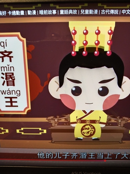 後來齊湣王繼位,他喜歡聽獨奏。(註:照片翻拍自YAHOO影片)