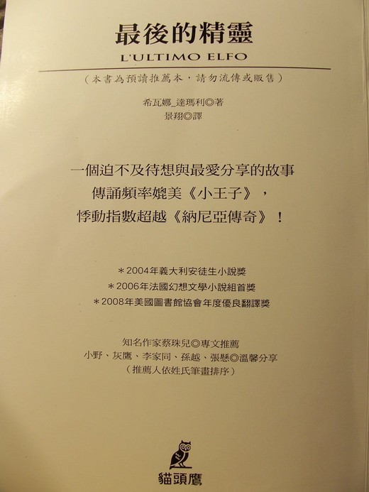 雀屏中選 收到這本書的試讀本 心裡頭很高興 因為我好奇出版社文宣廣告上的一句話 它說: 一個迫不及待想與最愛分享的故事 傳誦頻率媲美《小王子》, 悸動指數超越《納尼亞傳奇》! 是的 我十分好奇可以跟《小王子》齊肩併談的 究竟是個什麼樣的故事 方才 送孩子上才藝課 我才有時間翻閱了一下(其實截至寫這篇網誌,我才看了前三章) 果然就被文本給深深吸引住了 這是個輕鬆的 會引我發笑的故事 孩子上完課出來 我真是等不及要跟他分享內容了 結果 我就在教室外 講了至少十分鐘 我相信這會是一本有趣的故事 就讓它插隊進閱讀書單行列吧! |