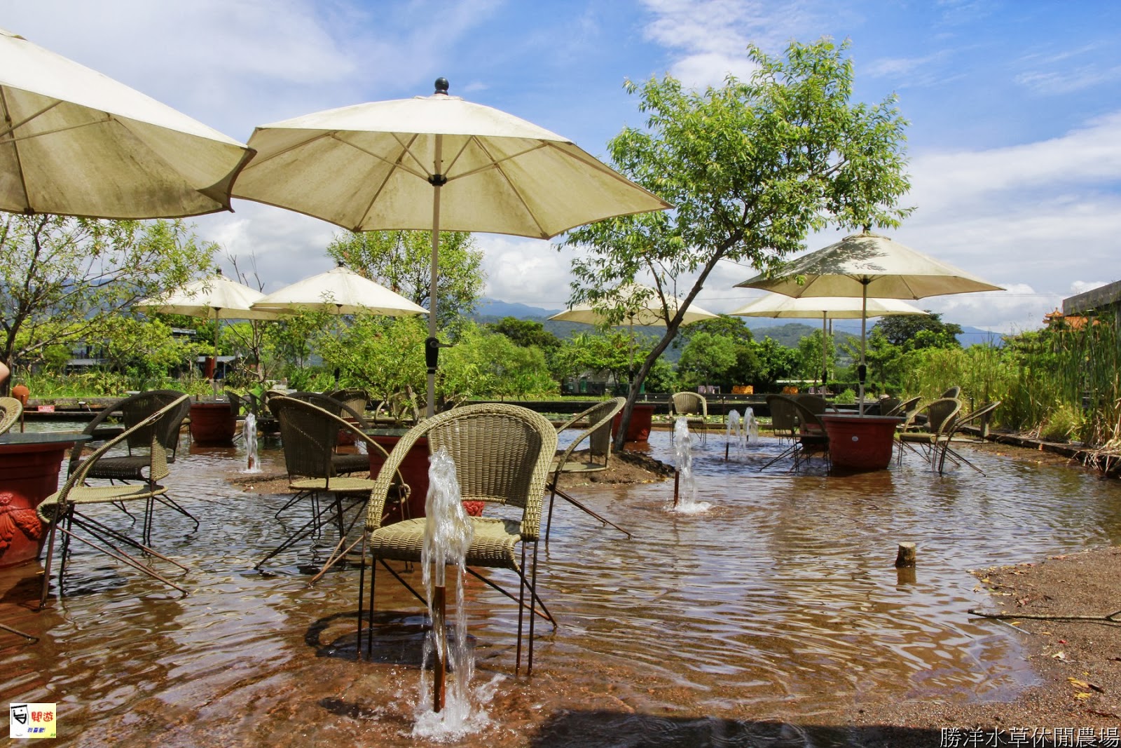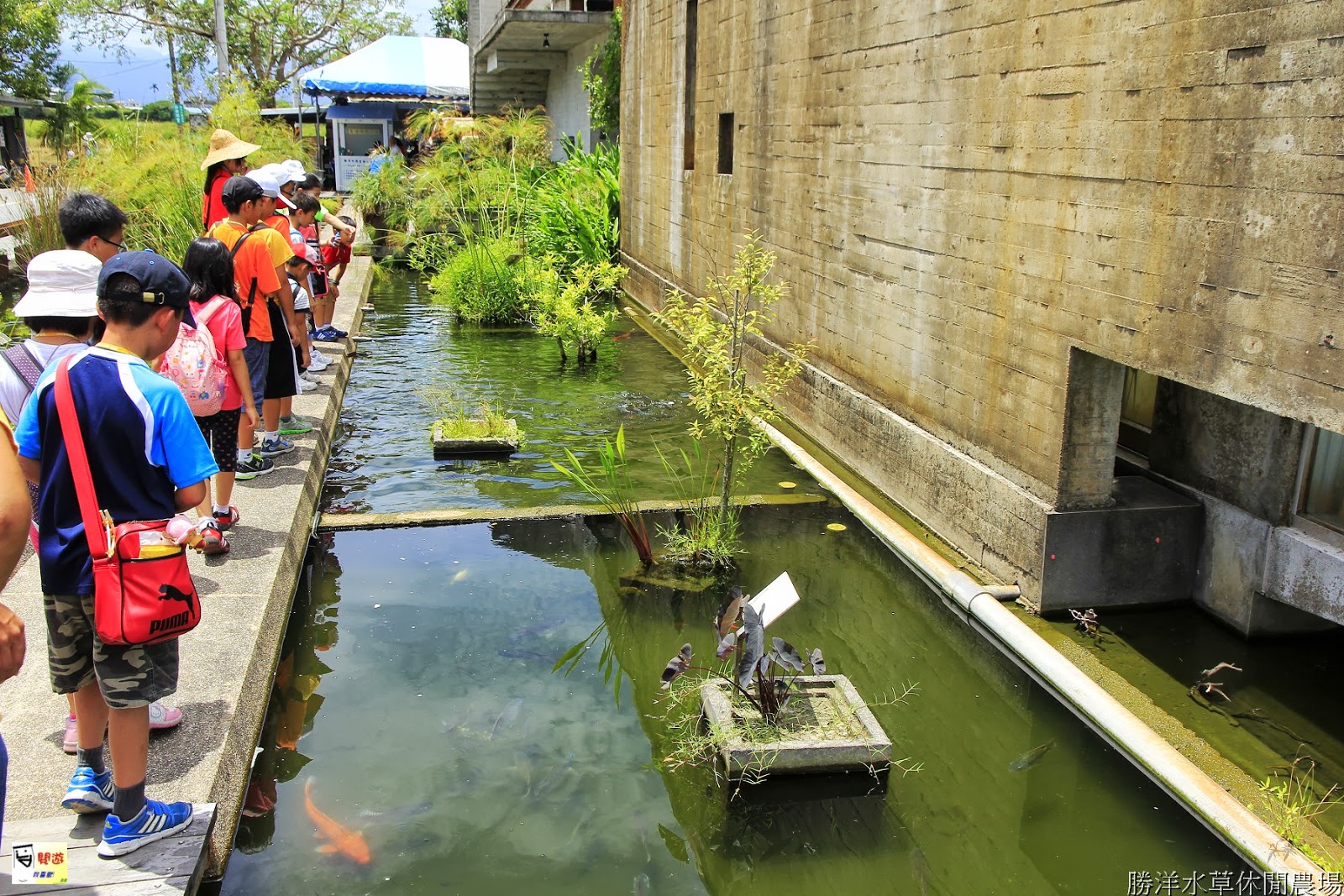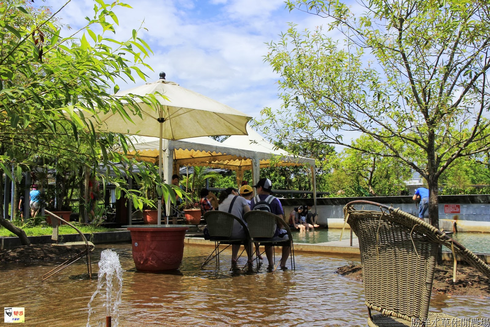 很特別水中桌椅,拉起褲管,脫下鞋襪,哇! 水沁涼消暑 坐在籐椅上,享受微風與陽光, 一旁有著"泡腳池" 池中的魚兒會來吃你的腳皮,很特別的體驗。 手壓汲水器來一場水戰,戶外養殖池是以「水族」、「水草」兩大方向發展,欣賞水生植物之美 ![]() 感受生態之豐富多元。 ![]() 勝洋水草休閒農場裡有水草商店、水草溫室、生態池、水草餐廳,這裡很適合全家大小長知識,瘋水戰,休閒的好地方。