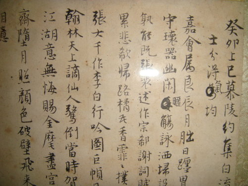 最值得一提的是一幅「行書小品」,從形式來看不像正式的書法作品,沒有落款紟印,內容是兩首完整的敘事詩,有2處錯字給圈起來更正,這應該算是草擬的詩稿吧!雖然只是草稿,但是筆風雋逸,且被當作墨寶似的精裱裝框,其中意涵耐人尋味。 這件書法的玩賞過程曲折離奇,前後經過3位高人指點,才理出頭緒。某一天剛好孟絕子來蘭臺,我自牆上取下來請他「掌眼」,見他拿著放大鏡逐字推敲:「這第一句『癸卯上巳慕陵約集白溝古物院兼呈達生靜農繭廬張陳二女士分淂氣均…』(其實是詩名),這『慕陵』就是莊嚴先生,他的瘦金體啊!了不起呀!…後面兩段,分別是五言詩和七言詩…這東西可是寶貝哪!要收好要收好…」我一聽莊嚴、瘦金體,就納悶了,我雖才疏學淺,起碼知道「瘦金體」長甚麼樣子,這上面的小楷不是瘦金體呀!但是循著癸卯年、白溝、(其實是北溝,我猜是因為口音的緣故。)莊嚴、臺靜農…等線索,查到了一個重要資料:1963 (癸卯) 年農曆上巳莊嚴邀集中外文友在北溝村外小溪畔,舉行曲水流觴雅集,臺靜農、孔德成、王壯為…等均為座上賓。 第二首是七言詩,詩名是「張大千作李白行吟圖巨幀見寄」,這前後二首詩敘述的事件似乎沒有甚麼關聯,為什麼會放在一起?看這墨跡並不是胡正群的,為什麼會在他的收藏裡呢?找到了一個答案後,卻發現更多問題接踵而來。 又有一天,孫中崙老師來訪,孫老師是教歷史的,在文化藝術系研究所時曾是莊嚴的門生,我又取出這件書法作品請教孫老師,他曾近距離和莊嚴老師相處,見過他的墨寶,她斷言這不是莊嚴老師的筆跡,這應該只是某人記錄當時的情景,但又看不出其他端睨,只建議我或許可以往李白行吟圖那個方向去探索, 這下我好生失望,有點像是要我去大海撈針那樣。 我心中疑問更多了,紀錄的人當時在不在場?紀錄這事的人跟做這詩的人跟收藏這詩稿的人,三者間有甚麼關係? 不久,陳彥增教授來找我,我想他熟識莊嚴的幾個兒子,且聽他說近日莊喆自美返台他們要聚會,我把詩稿影印下來請他帶著伺機打探一下,數日過去沒有任何下文,於是,我暫時把它擱下,差不多想要放棄了。 直到那一天,booker大哥來了(在這要特別這樣尊稱,因為他幫了我大忙),最近他老是帶著戰利品來展示,我就拿出我那寶貝詩稿來跟他較量,起先他頗不在意,我只好不厭其煩的跟他訴說詩稿中的典故,好不容易他認真的瞧了一眼這書法,突然間像是頓悟了一般,像是鐵口直斷那樣脫口說出:「這是彭醇士寫的‧」 彭醇士?聽是聽過,但沒深究過,我將信將疑,但總是有個新方向,又興奮起來了。 於是我把搜索目標轉向彭醇士,不到10分鐘便豁然開朗,真是柳暗花明又一村。先是找到一些彭醇士的書法信稿圖片及碑帖,稍後又查得一樁文壇韻事。 1963年間,彭醇士自曾克耑之手接獲張大千贈畫,一時興起做詩題款曰:「翰林天上謫仙人,驚倒當時賀季真;建安以來詎足道,大雅不作今誰陳。 流落江湖意無悔,賜金麾盡宮袍壞;一生坎壈憂患多,萬丈光芒詩卷在。寒齋落月照顏色,破壁飛來疑有翼;浮休居士妙通神,憐我孤吟慰相憶。」 這題詩和我手邊的詩作原稿大致相同,僅有幾字之差。如下:寒齋 後來我問booker怎麼會想到是彭醇士的呢?他說5年前他收過一批彭醇士的文物,他的書法和稿子就是那樣。這幅書法詩稿耐人尋味之處就在,甚麼人把它裝裱起來,甚麼樣的因緣讓胡正群收藏著。胡正群跟莊嚴、張大千、彭醇士等大師比起,年齡上整整晚了30年,在名望上更是沒得比的,這一件彭醇士的墨寶為什麼會在胡正群手上?這是還沒解開的謎。也表示我這篇文章可能還有續集。 如果有續集,肯定會朝著「遺物」這主題發揮。我發覺我這史料工作者,不就是「遺物整理者」嗎?馬賽的物品、胡正群的收集品,還有過去太多太多的文物收藏品:如王小明教授、邵伯勳…等,都是因為當事人離世了,我才有機會接觸他們的遺物,也才有機會開眼界。 人活著的時候,誰想得到有一天自己珍藏的、富紀念意義的收集品,會流落異地任人擺佈。這句話可做本文的結語,也可做為下篇文章的卷頭語。
