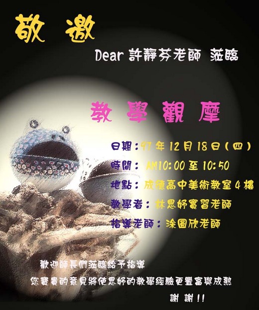 這是她寄來的邀請海報 一直抱持謙虛態度學習的她要試教了