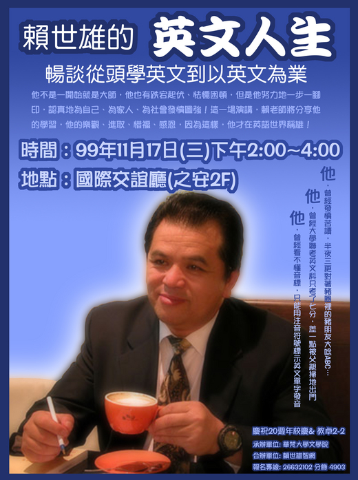 11月17日(星期三)賴世雄老師要來學校演講