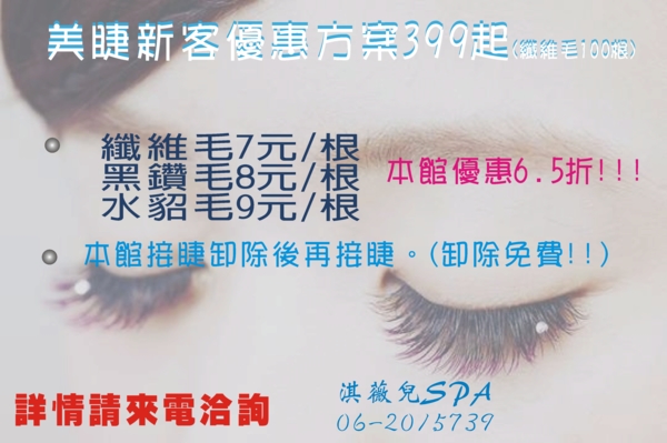 美睫新客優惠方案399起 (纖維毛100根)