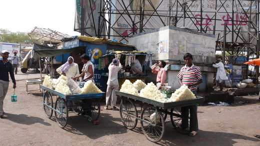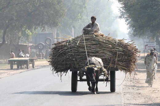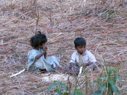 在印度旅行常常可見賣甜點的攤子或店舖,其甜點價錢便宜但一咬在嘴裡,真會甜死人;反觀當地印人,卻每人對這些甜食都吃的津津有味;在這嗜甜的國度,旅途中可見有大片的蔗田,當其收成時,路上成排的牛車來回運送,景象真可說是蔚為壯觀呀! 照片1Jansi公車站賣甜點的小販 照片2Kushinaga 往Faizabad的路上滿載甘蔗的牛車 照片3Kushinaga的甘蔗田大人收成後換小孩來收