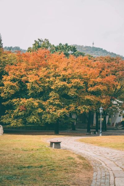 在青島中山公園,降溫讓各種樹葉的顏色更深更艷 |