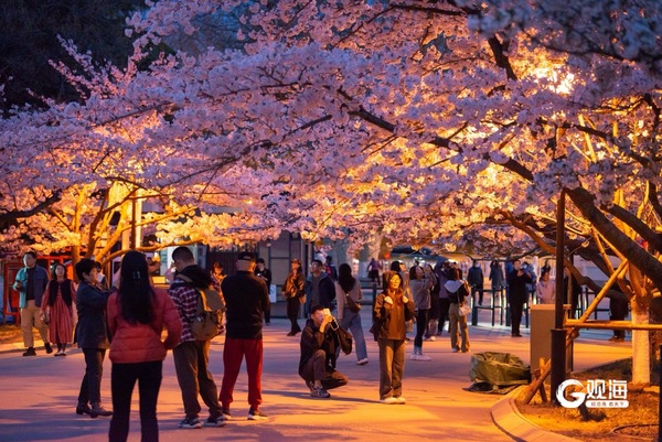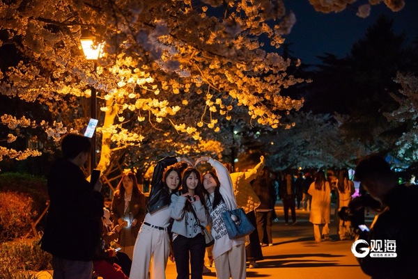 “夜樱”缤纷,青岛开启夜游赏花模式