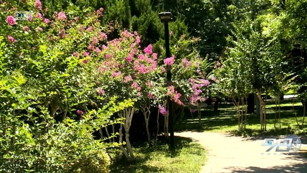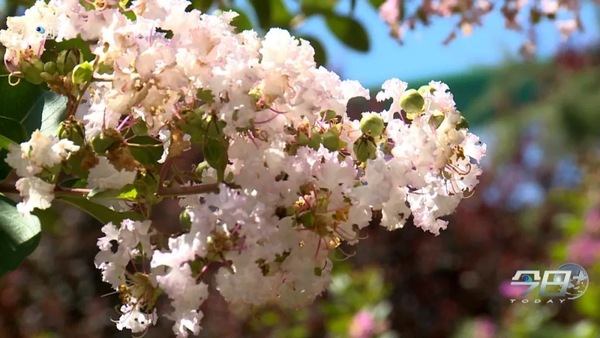 青岛市北区海泊河公园内的紫薇花迎来盛花期