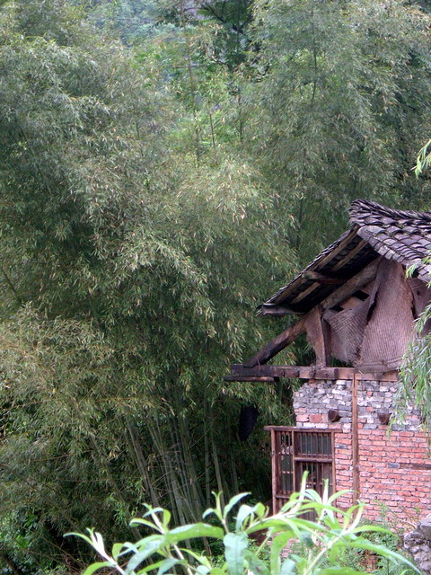 洶猛的氣體在我腦中具像成一把力道強烈的鎚子,狠狠敲擊我的嗅覺。如果以圖像顯示的話,八成我眼睛成漩渦狀,然後背後跳出幾個空心粗體字,大大地跳著:轟! 嘿嘿,是我太誇張了。 路上下起了雨,溼氣重得像是把空氣憑空絞緊,可以擰出水來。路況比想像中好,平整柏油路,只是曲折多髮夾彎,司機大哥們喇叭聲不絕於耳,通告對向車道有車行來的消息,即使有車對向而來,兩方的司機亦冷靜,不減速地錯車而行,呼嘯而過,捏住一把冷汗的同時,幾滴涼意落在心底。 直到午後一點五分才在路旁野店停車,要吃午餐啦!在二郎山腳的路邊,二路口村,久久餐館。等了很久,菜才上桌,不能說是工夫菜,就是尋常客棧所提供的菜肴。一入口,畢竟還是蜀地境內,「辣」是少不了的一味。 那時我才真正領會到四川的「麻」是何解。川花椒的麻,紅辣椒的辣,若不是蜀地所產,總少了那麼一股直衝腦門的勁頭。 上路前,還是再上一回廁所吧。廁所邊有一叢竹子,有些小擔心會不會有青蛇,不過應該是想太多才是。從野店旁看,廁所一角的景色還挺美的呢!下方是奔流的山溪,一股涼意從四面八方湧來。不過,要注意別一腳踩空滑下去,水流可是不會輕易饒你的。 ﹝未完成‧待續﹞ 拍攝者:阿杏﹝http://www.wretch.cc/album/acien﹞、草川﹝茅屋照﹞