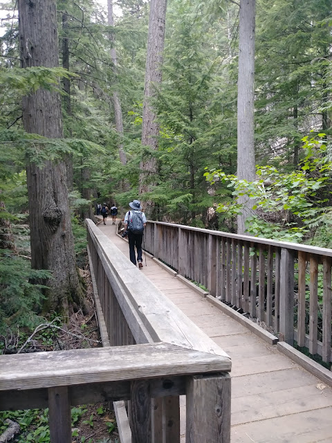 根據考證,現在的冰河國家公園區,最早有人類的遺跡,始於一萬年前的印地安人。最早落腳於此地的印地安族羣為平頭族 (Flathead) 和庫特奈族 (Kootenai),黑腳族 (Blackfeet) 則是18世紀才搬遷至此,並且佔據了冰河區的東面,平頭族和庫特奈族則維持在冰河區的西部與南部。 - 冰河國家公園的岩石是世界上保存最完好的原古代沉積岩,擁有最豐富的早期生物記錄來源。著名的三分點 (Triple Divide Peak),也就是三個分水嶺的交會點,也位於冰河國家公園內。三分點以東的降雨最終會經墨西哥灣流入大西洋,以西的降雨最終流入太平洋,以北的降雨最後經加拿大的哈德遜灣流入北極海。 - - 冰河國家公園有6座山海拔超過10000英尺以上 - - 我們從西囗進入冰河國家公園 - - 沿路上有許多的自行車愛好者,穿梭在這條最有名的公路 - 向陽大道 (Going-to-the-Sun Road) - - 從冰河國家公園的西口進入後,最先進入眼簾的就是麥當勞湖 (Lake McDonald)。她是冰河國家公園最大的湖。這個長長峽灣般的湖泊有10英里長,472英尺深,三面環山,大部分受山阻的雨水最後都落在麥當勞湖上,所以這裡的氣候是溫和潮濕的。 - - - - - 麥當勞湖畔的小木屋 - - - - - 冰河國家公園是火車可以到達的,沒有開車也不用擔心。冰河公園內有33輛紅色巴士車隊,是世界上最古老的旅行車隊。這些紅色巴士車隊已超過100年的服務歷史,每天都在冰河公園內穿梭。紅色巴士的司機兼導遊是經驗豐富的公園老兵,要搭乘紅色巴士需事先預訂,因為票經常是售罄的。 - - - 接著就要進入今天健行的高潮,雪崩湖步道 (Avalanche Lake Trail),總長4.6英里。雪崩湖的名稱是由 Lyman Sperry 博士在1895年時,到此探險,聽到和看到周圍山群的雪,咆哮而下,因此稱這個湖為雪崩湖。 - - 進入雪崩湖之前,會先經過雪松小徑 (Trail of the Cedars)。 - - - 在小徑上有一個橫跨雪崩溪的人行天橋,可以俯瞰水流湍急的雪崩峽谷。 - - - - - - 沿著峽谷,慢慢地走進鬱鬱蔥蔥的森林。此地的許多樹木,樹齡都超過500多歲了。 - - 這隻可愛的鹿,似乎知道她要當麻豆了,乖巧的站著不動,讓我們的相機卡嚓卡嚓的響。 - - 還有花栗鼠 - - 萬年前就有的古老岩石,加上古樹,真是覺得很幸福,能夠有幸與這些屹立不搖旳萬年群山為伍,讓我這渺小的人,看見她們歷經歲月的淬煉。 - - 走入雪崩湖,只聽讚嘆聲此起彼落,實在太美了,4.6英里的步行太值得了。見到此景的健行者,臉上都掛了滿滿的笑容,剛剛行走的疲憊也都已經雲霄而散了。 - - - - - - - 雪崩湖的美景,我久久不能忘懷! |