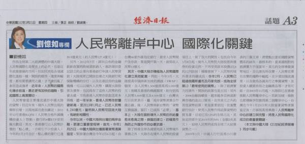 作為全球第二大經濟體的中國大陸,人民幣國際化是歷史上的必然,也是近年政策發展的方向。但如同其他各項國際化進程一樣,開放的順序、速度與幅度,都有需要講究之處,才不會因亂了套而造成傷害。近年來,人民幣的國際化穩步前進,最近更有加快的趨勢,引起國際上高度關切。 人民幣曾是主要僅流通於中國大陸的貨幣;但近年來,境外人民幣出現的頻率日增,出現地區也愈加廣泛。2011年12月香港RQFII(人民幣合格外國機構投資人)啟動,發行的4檔ETF受到極大歡迎。其次,香港發行以人民幣計價的「點心債」,亦吸引不少投資人;今年的1月2月合計,點心債的發行已達20.5億美元(約人民幣127.4億元)。 另外,2012年7月,深圳公布的金融創新政策將跨境貸款納入,准許深圳登記設立的企業向香港銀行申請人民幣貸款;大陸現更已開放在港之大陸銀行和保險機構的分行,以及在港註冊的金融機構,可以以境外人民幣,購買大陸股票及債券。也因為有了這些人民幣的投資去處,方為香港人民幣存款創造更多商機。近一年半來,香港人民幣存款屢破新高,至2013年1月止,已近人民幣6,240億元,當然與人民幣可回流大陸,有絕對相關性。 今年以來,中國大陸與台灣的兩岸金融,更建立重要里程碑。首先,今年1月25日,中國大陸與台灣簽署貨幣清算協定,緊接著台灣自今年2月6日起,由台灣46家外匯指定銀行,接受人民幣開戶及存款。單是開戶第一天,就吸收人民幣13億元。 其次,中國大陸亦積極為人民幣國際化建立其他配套。例如,今年3月,大陸提高中國與新加坡的換匯(SWAP)額度,自人民幣1,500億提高為3,000億元;南韓及香港的換匯額度,則分別為人民幣3,600億元及4,000億元。台灣央行日前更表示,繼「兩岸貨幣清算合作備忘錄」後,人民幣與新台幣的「貨幣互換協議」簽訂,已成為「必要」。基本上,大陸在面對境外人民幣的供給量愈來愈高之際,換匯的建立,的確是作為防止外匯炒作的必要武器。 除了核准全球各國家地區人民幣境外業務之外,大陸亦在境外人民幣的投資項目上,做了很大的開放;包括自今年3月8日起,境外人民幣對大陸股票與債券的投資比例,不再受到原本股債2比8的比例限制;種種發展下,人民幣的境外需求持續成長。今年2月,人民幣已超過俄羅斯盧布及丹麥克朗,成為全球第13「最常使用的貨幣」。除了經濟實力因素外,開放的政策也是主因。另外,2008金融海嘯後,越來越多亞洲或新興市場的進出口貿易,改用美元之外的其他貨幣結算,更是重要原因。依滙豐銀行估計,使用人民幣作為結算貨幣的貿易量,目前已有12%的全球占比,其後並將提升至2015年的30%(金額2兆美元),屆時人民幣將成為全球三大結算貨幣之一。 2009年3月,中國人行行長周小川發表的三篇文章,清楚點出當前國際貨幣體系的缺失。最根本的,當美國相對的經濟實力不復當年,美元的全球準備貨幣地位,自也應有所改變。人民幣若要在改變的趨勢中崛起,至少須加強流通度,以及做為各國央行之準備貨幣,及投資人願意持有之金融產品等,才有可能。自2003年11月起,大陸即已在香港推動人民幣離岸中心,而新加坡、倫敦也都積極爭取做為第二個離岸中心,台灣在今年1月25日與大陸簽署貨幣清算協定後,亦展現高度興趣;人民幣離岸中心的建立與完整,將是人民幣國際化成功的最重要關鍵。 (本文刊於3/21經濟日報第3版,與中國大陸《21世紀經濟報導》同步刊載)