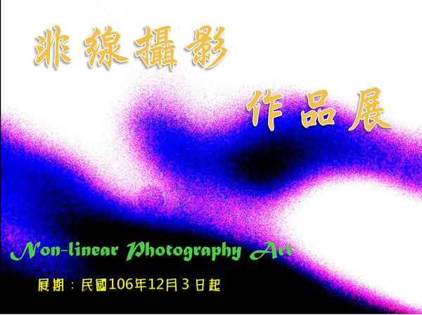 非線攝影作品網路沙龍展出的話 「非線攝影藝術」(Non-linear Photography Art)正是在傳統攝影進入數位攝影後,發現到一種新的攝影藝術表現手法,即是「非線攝影藝術」。非線的觀念取自於電腦從線性運算的突破走向非線性運算系統技術,才產生現今使用相當便利的非線性連結與非線性搜尋等等技術。目前,大眾都普遍使用非線性技術的優點而毫無所知。自非線攝影的表現手法被發現後,攝影藝術正如文學藝術將開始以線性為區分的基礎,把傳統的攝影藝術劃歸為「線性攝影藝術」,除此之外的攝影手法劃歸為「非線攝影藝術」。這是依據非線文學理論所歸納的十七項特性來檢視「非線攝影藝術」,發現非線攝影技巧具有這十七項特性中的非線性、遊戲性、可重寫性、去中心性、隨意與自由性、無固定性、相互交叉重疊性、多視線性等,所以把這個新的攝影手法稱為「非線攝影藝術」。然而,在傳統的線形攝影藝術中,其實也存在著非線攝影的技巧,即是所謂的動態攝影,以及早期有謂底片成像法等,這類的攝影成像技巧不太容易掌握,卻相當符合非線攝影的概念。