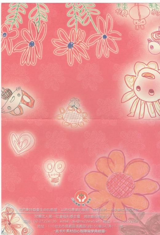 ─聞張主任即將屆齡退休有感並寄贈之 一張小小卡片 才上心頭 再得一張卡片 已近黃昏 一頭的短髮 在象山的山腳下 在信義路五段的巷弄裡 經歷楓橋事件 經歷江南事件 只為喜憨兒的夢而留 一頭的短髮 被經國先生瞥見 被靜波先生留意 從此推倒禁錮的圍牆 走入社會 走入人群 走入人心 我們是要長大的 我們有好多的夢 我們一直努力學習 就是無法跟抽象聯結 那八歲的階梯 太高了 我們需要庇護 我們需要職場 我們需要生活 父母家人都會老去的 一張小小卡片 有誰懂呢 謝謝您細心的呵護 讓簡單的線條 飛越鴻溝 深植人心 2011/04/01 《詩後語》 前些日子,我寄著作贈送第一兒童發展文教基金會張培士主任,她回了一張卡片,又說即將於今夏退休,我有感而發寫下這詩。張主任從基金會創立到今,孜孜不倦推廣喜憨兒的教育與就業工作,也讓喜憨兒走進社會,被人接受與重視。 |