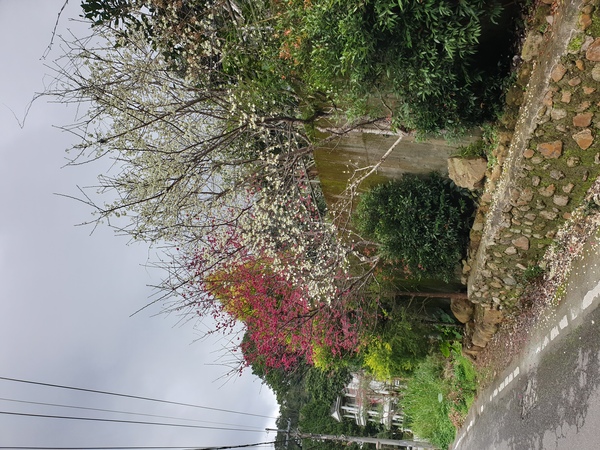 友人笑著對我說:「隔壁鄰居種的櫻花開得更漂亮,紅的白的都有。」我聽了,馬上帶著手機去查看。這一看,真是驚艷不已。