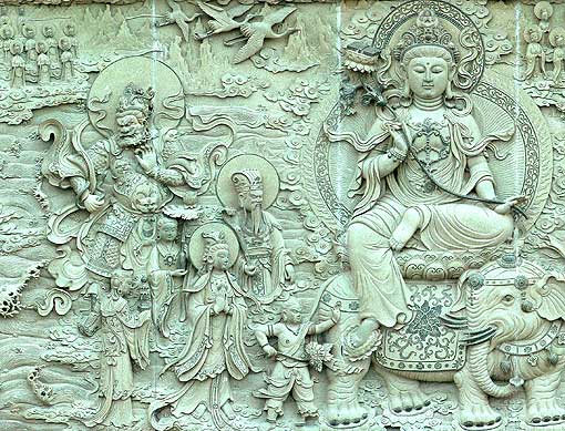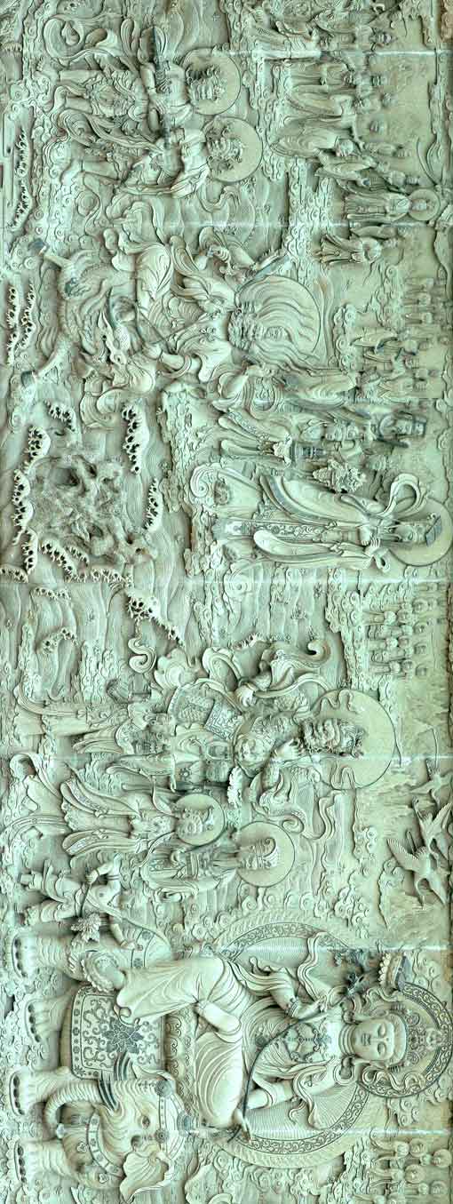 青石浮雕「五百羅漢塔」位於南海觀音的後面,人物刻畫細膩出神,是不可多得的藝術珍品。 經仔細觀察後,用了近3個小時的時間,終於把這部經典作品拍攝了下來。(約高3M,長30M) 回來後,朋友們相聚,一起分享這幅巨作,很是高興,特別為愛好宗教藝術的朋友製作了一幅長7M,寬61CM,的長卷,特此用局部照片一起來分享。