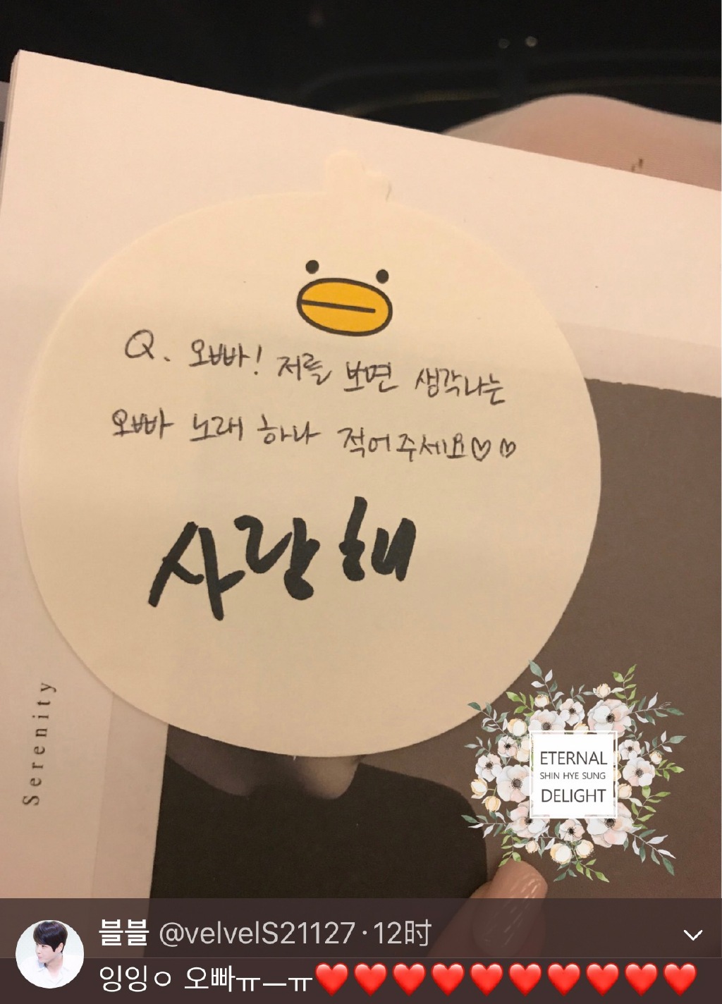 圖5 fan“哥哥 請寫下看到我后想到的您的一首歌” 申歌手寫了“我愛你”