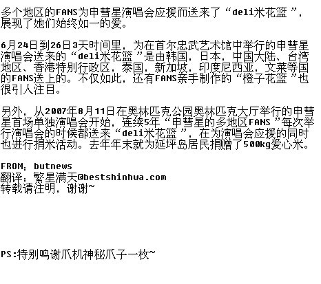 申彗星的跨國fans自2007年8月在奧林匹克公園奧林匹克廳舉行申彗星初次單獨演唱會起,