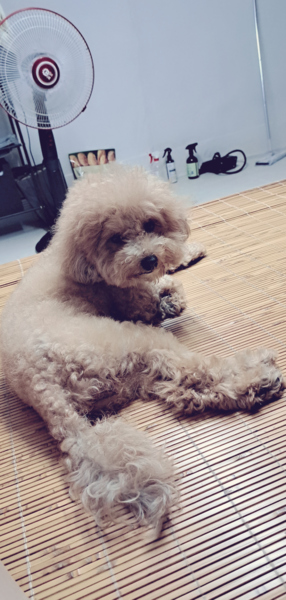 直到遇到妞妞,因她是受虐犬,而當時救她出來的同學一時找不到嗣主,其他受虐的名犬像是瑪爾濟斯和比熊都被領養走了,只有妞妞還找不到主人,同學一時就想到我,我得知情況後,二話不說就答應了。我相信這是我和妞妞的緣分,也可能是延續我和小哈利的緣分。