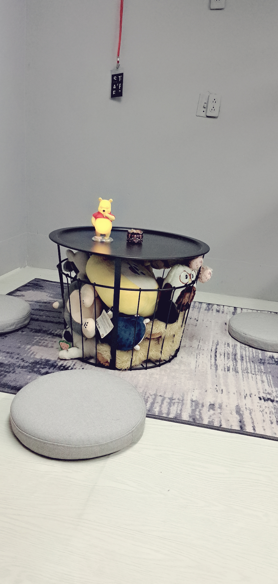 床組也是灰色調,但妞妞太會掉毛了 所以買了涼席比較好清理,雖然有點不搭