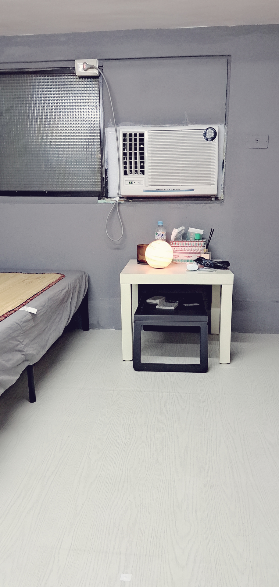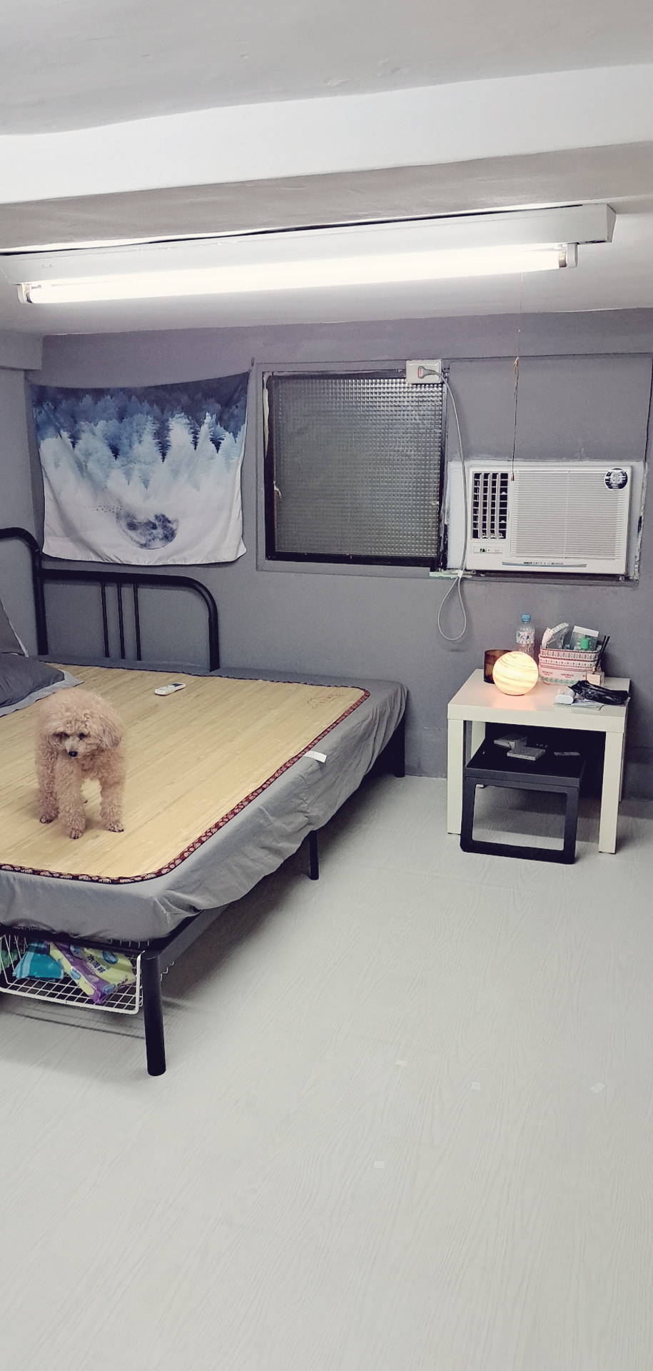 這房間全是我一手設計的。 它原本是家裡的倉庫,兩年前收養妞妞後決定將它改造成我和妞妞睡覺的地方。 首先是清空房間,然後著手設計規劃。接著到特力屋買油漆、木質地板黏皮、床架組......,整間房以簡約純淨為設計概念,所以就定調灰色和白色系。牆壁和天花板油漆以及地板黏貼全是我一手完成,很強吧! 這樣總共花了我五天的時間。 以下圖片大家自己看囉!