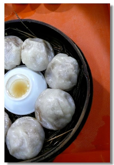 店裏的產品非常簡單,就湯包和鴨血粉絲湯兩種.到達時已是下午兩點多了,不過店裡客人還是八成滿,可預見它的美味了 ! 第一口咬下去,覺得異常鮮美,滿口餘香,味道略帶甜味,和鼎泰豐的湯包不太一樣.