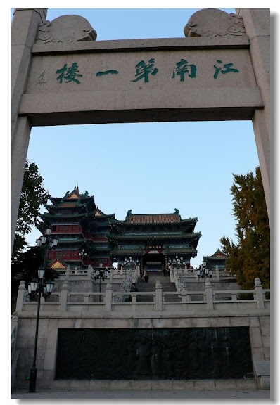 重點是價格便宜,湯包一籠8個RMB8.0,粉絲湯一碗RMB7.0 臨走前還帶了四籠,可以在回昆山的路上當晚餐 ! 吃飽了,該前往閱江樓了,再晚就關門囉… 哈哈,又迷路了,到了閱江樓所剩時間不多,所以僅能觀賞主樓,周邊的砲台…等設施就只好放棄了! (樓外)