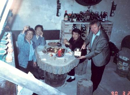 俞兄在当地的一位老友,原籍是捷克,是在仗後移居奧地利的一位商人,我們早上去參覌他在郊外的一座倉庫,非常的大,可放10部40呎貨櫃,也是我們計劃未來的存貨中心. 接著就去他的女婿家,他可是得到奧地利數座白葡萄酒獎牌的主人,話說走進他設在 地下室的酒窟,左右兩迈可就是我們在電影中所看到的大橡木桶,每人手中一亇酒杯, 女婿手持一亇長圓型玻璃噐皿開始從橡木桶中吸出,直接就送進每亇人的杯中,那時 白葡萄的芳香味也就迎面撲鼻而來,入口亦是香醇略帶甜味,極易入口,接下來就是品 嚐在不同的季節,多雨或少雨,乾燥或潮溼,不同的酒精純度所釀的酒,試到7,8杯後,那 時可就感受到好喝的酒的後勁,当然我們三人也半醉的各帶三打不同口味的白酒盡興 而歸,也讓我們初次体会到 原來在維也納也可以享受到的酒窖之旅! |