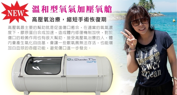 非常感謝台中菲仕美診所提供高壓氧治療,超推薦這台“溫和型氧氣加壓氧艙”,高壓氧治療是將病人置於高壓艙內,讓他們以一般自然呼吸的方式呼吸1.6到3個大氣壓純氧氣的一種治療方式,可使手術部位組織之氧分壓提高,改善患部的血液循環而解除組織缺氧水腫之現象外,並可促進傷口癒合,使吞噬性白血球能有效進行殺菌任務而加速傷口之痊癒。