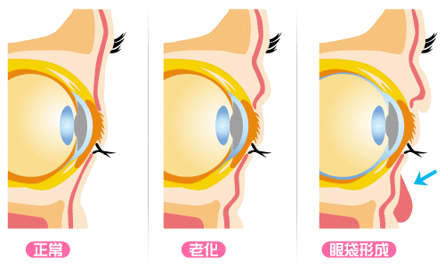 想知道眼袋是怎麼生成的嗎? 請看眼袋生成小知識 眼袋有哪些類型? l 肌肉眼袋 -- 天生眼框肌肉凸出,看起來有笑意,頗有異性緣。 l 浮腫眼袋 - -生理期、懷孕、熬夜、鼻塞等造成眼部水腫,使用收斂眼部保養品、睡前不喝水或吃太鹹則可以得到改善。 l 脂肪眼袋 -- 老化造成眼球鬆弛下垂,造成眼球下脂肪突出,給人感覺蒼老沒精神,塗抹眼部保養品並不能得到太大的成效,直接考慮做整形外科眼袋手術可一勞永逸。 眼袋小知識