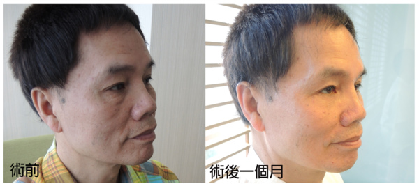 從側面可看出經過眼袋手術後,完全看不出有眼袋,傷口也非常不明顯,幾乎看不到,效果非常顯著!