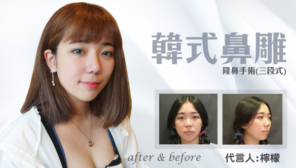 韓式隆鼻之後檸檬的鼻子高挺了許多,除了山根增高、鼻翼在視覺上也縮小,五官整體看起來更立體了,隆鼻手術的恢復期很快,大約七天到十天就會消腫5-6成,但完全定型,鼻子完全消腫還是需要三個月的時間。隆鼻手術的傷口在術後也會慢慢變淡,三個月後疤痕會變的不明顯到達幾乎看不出來的程度。