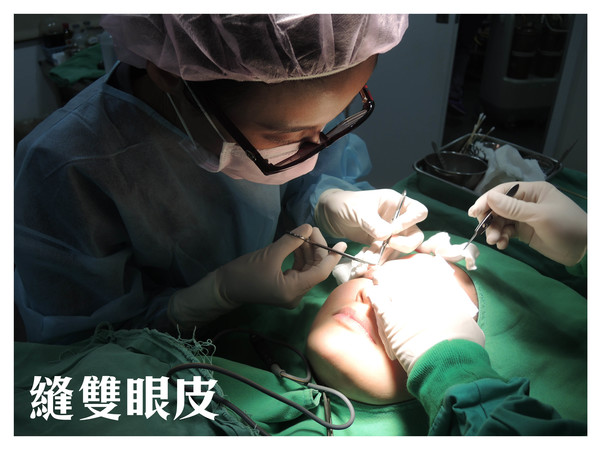 躺上手術台後,朱醫師替Loren做上雙眼皮的記號,由於眉眼距離較近,雙眼皮能做的高度有限,因此朱醫師和Loren需要經過充分的溝通,達成共識才開始動雙眼皮手術。