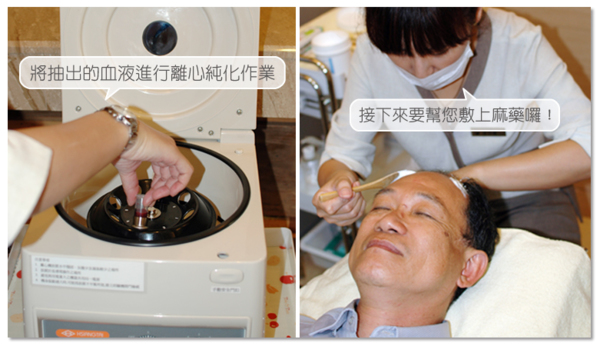 接下來是將抽出來的血液放進離心機做離心純化動作,在每次進行療程前都會先在我要做治療的部位膚上一層麻藥。