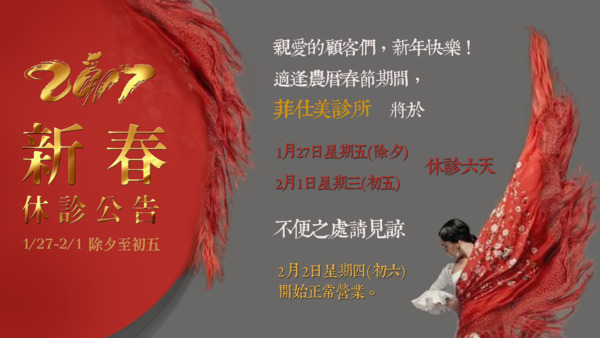 2017菲仕美診所新春休診公告
