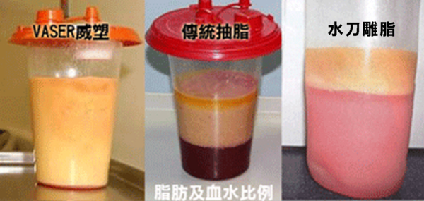傳統抽脂:利用撕裂作用將脂肪細胞吸出 水刀抽脂:利用水柱力量沖刷脂肪 雷射溶脂:利用光震波效應,產生熱能 超音波是:利用高頻振動形成音波氣泡,以空穴效應讓脂肪組織乳糜化