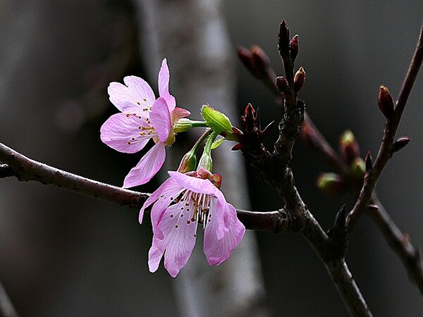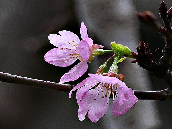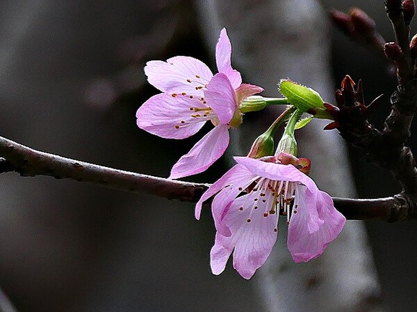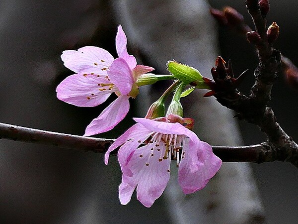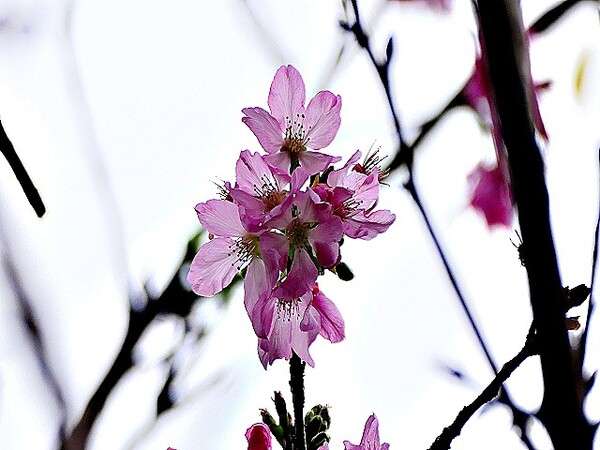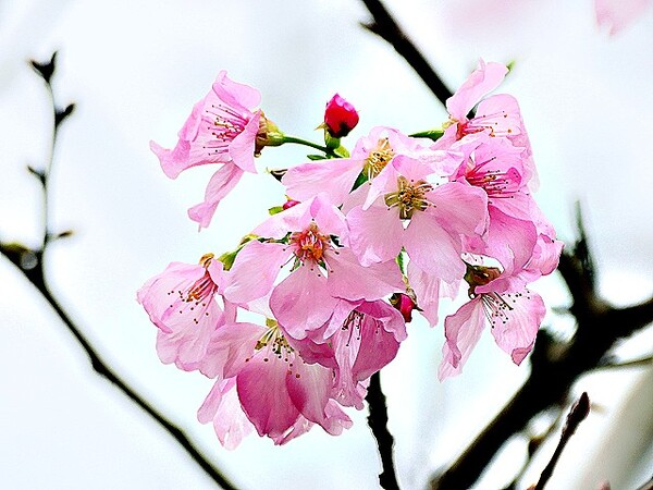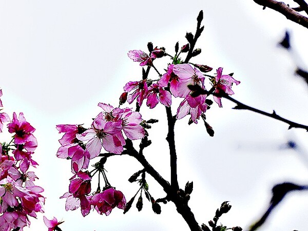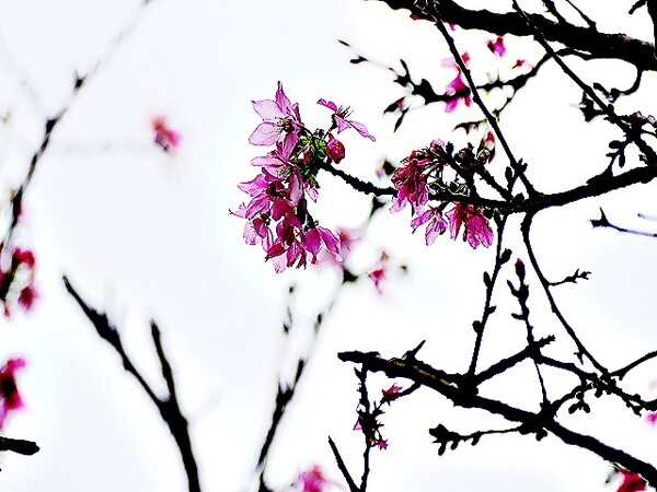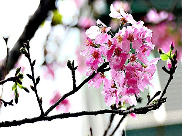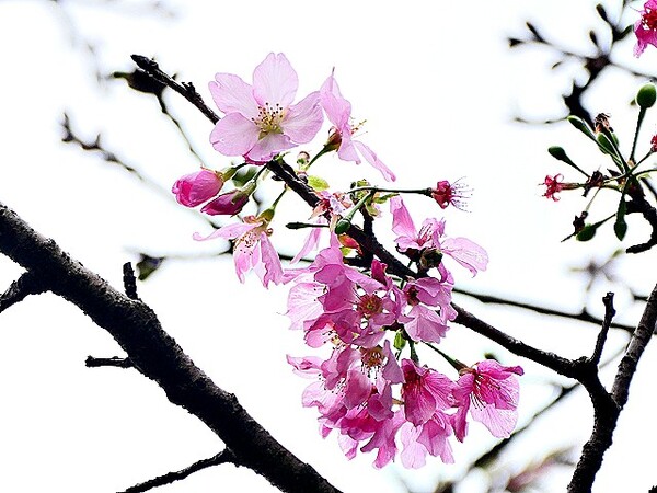 上午到台北玫瑰園,賞千嬌百媚花花遠景,美不勝收。 這些後歲櫻花,躲在圓山冷宮巷弄,94翁先下手,拍攝幾朵與好友共賞。 玫瑰花,稍後分享齁..............