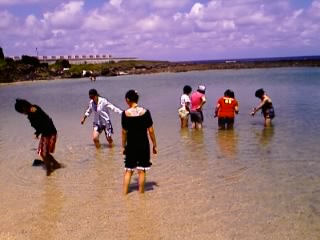 》玩水的大家《 所以一行人就只好踩踩水過個癮,而俺為了不想讓鞋子開口笑,即使是一雙只要75元的鞋子 就很勇健的赤腳玩水當作走健康步道,每走一步就可以聽到我慘叫一聲這樣 囧 可是其實大家的身體都不好呀!!!每個人赤腳下來走都很痛耶耶耶!!!(指) 只是我比較有骨氣(?)堅持赤腳玩這樣,大家都穿著鞋子下水啦XDDDDD 接受完海灘的洗禮也差不多癱掉了上午的體力,於是就龜速的前進7-11覓食這樣 那泡麵真是個好物呀呀呀!!從來沒想過吃泡麵肚子會這麼滿足(爆) 真的是因為太熱了(指) 而在浮潛前的空檔,因為是正熱的時段,就決定繼續在冷氣房裡補眠、補體力XDDD 怕被卡字所以自動接下篇(爆) 》踩水玩的兩人《 |