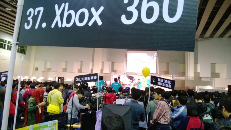 但也只是個小小的普通攤位而已. 畢竟主角是有如黃金85K般耀眼的XBOX ONE板攤, 而風光不在的360板就只好在後方援護射擊, 所以本打算當天打打COD或HALO就好, 可是地下街軟世聽說我要辦360攤就塞了一堆東西給我, 於是只好就正式轉職為XBOX休息中心, 提供贈品與糧食給參與這場戰鬥的同好們. 不過光那台32吋電視的租金就要9百, 所以委屈大家吃七七乳加了, 還可以稍微來玩一下不太熱門的復仇者聯盟. 應該多少能回復疲勞繼續奮戰吧?