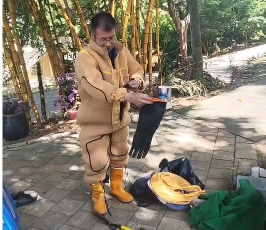 末學雖是義消 略學(防護與救護 ), 固然是剛成形的小蜂窩,正行前充分檢查著裝防護與做好救護措施。