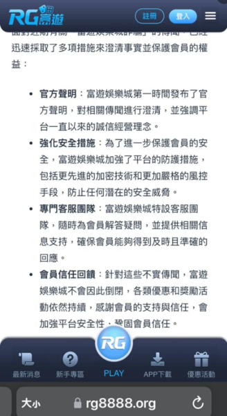 【新聞資訊】RG富遊娛樂城詐騙、質疑不能歐就踢人、受害者自救SOP詳解、被RG富遊娛樂城詐騙拿回錢的機率高嗎?RG富遊娛樂城虛假投資坑害國民、呼籲➡️請勿加入