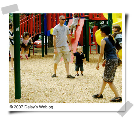 加恩(鞦韆上)和媽咪 最近聶先生出差的機會多了不少,讓我們因此變得聚少離多。不過人家說「小別勝新婚」,我們反而見了面後就有說不完的話。 昨晚睡覺前,聶先生和我聊起來最近和他一同上課的同學 Trinh。 Trinh 的丈夫最近證實罹患肝癌,三十歲不到的她因此心情很低落。聶先生知道我的母親當年也是因肝癌病逝的,很想說些鼓勵她的話卻反而因此更說不出口。