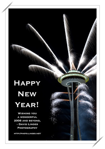 Space Needle 的新年煙火《攝影: David Lindes》 哇,2007 年就這樣過去了。 今天其實在 Allison 家是辦有一場很熱鬧的 New Year Party ( 請看 2008 New Year Party (上)、 (中)、 (下) ) 的,不過因為過去的幾年來聶先生都喜歡找幾個他的好友來過來一起慶祝新年,我們也就留在家裡了。因為家裡的空間不大,今年我們也比較忙,沒有機會邀請太多的朋友。不過幾個好友相聚聊天玩遊戲,氣氛也很好。 記得去年的這個時候我們還在台灣。哥哥嫂嫂幫我們看加恩,好讓我們能和姐姐們一起到《台北 101》大樓附近看跨年煙火。之後聶先生還假扮是『台灣通』,捨棄方便的計程車,偏偏要享受自己搭捷運,轉火車回哥哥家的冒險體驗。這就是男孩子愛刺激與挑戰的天性吧! 不過西雅圖的冬天實在太冷了,我可是只想在暖暖的家裡看電視轉播,說什麼都不會想去 Space Needle 下打哆嗦倒數的。 對於過去的 2007 年,我有太多的感謝。對於這新來的一年,我也有幾個願望。我希望我在台灣和這裡的家人都健康平安,聶先生和我可以在暑假前順利完成學校的課程,全家可以搬到一個大一點的房子。當然最想的是,家裡能多一個弟弟或妹妹來陪加恩囉! |