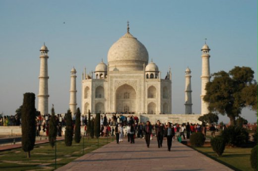 泰姬瑪哈陵主體是八角形的大理石建築,正中為半球形圓頂。圓頂四周仍有四座稍小的小圓頂。這種建築,同時融匯了義大利文藝復興式的圓頂建築,以及伊斯蘭拜占庭的蒙兀兒回風,和諧恰到好處,可能連米開朗基羅也要讚嘆的。整座主體含大圓頂在內,均以白色大理石建成,卻絲毫不見笨重感,但又需藉重力學支撐,可見難度。 主體平台四周邊角落,各有四座圓柱形的高塔,這是為了取得視覺平衡的效果,否則陵寢主體將過於孤單。但沙賈汗的細心在於,四座圓柱高塔均以向外傾斜12度的結構向外微張,這是為了萬一地震震落圓塔時,也不致於會壓到主體,產生破壞。 其實,主體本身便有避震功能:主體建築下方掘有18座井,每座井都以一層石頭,一層柚木,減低震壓,原理也和埃及古夫金字塔的減壓室有異曲同工之妙。一切設計,當然是為了慕塔芝‧瑪哈。愛人的心,在此一覽無遺。 慕塔芝‧瑪哈的陵寢即放置地下室中。後來,沙賈汗去世後,也和慕塔芝‧瑪哈同葬。今天,進入泰姬瑪哈陵主體正門,中央是大理石鋪成的屏風,屏風內有兩具大理石棺,但慕塔芝‧瑪哈及沙賈汗並不在這兩座石棺中,而在更下方的土窖裡。但遊客瞻仰這兩座空石棺,依然能發出千年一嘆的感慨。 這麼美的建築,這麼美的故事,難怪印度詩人泰戈爾將泰姬瑪哈陵形容為「天上滴落人間的一顆愛的淚珠!」講得太好,實在找不出第二個詞來形容泰姬瑪哈陵了。 不過,因回風建築入內都需脫鞋,加以觀光客太多,而印度人往往又有些體味之故。因此進泰姬瑪哈陵主體內部時,有著很濃的異味,並不好受,而且人擠人,肉貼肉,往往沖淡了美麗淒清的心情。 倒是在主體外,四處閒步來得舒暢。此刻可以很近距離貼近泰姬瑪哈陵,陵上大理石都以寶石貼飾美麗的花草,以及伊斯蘭的經文。抽象而流動的符號,更添優雅。不像西方天主教堂往往雕刻神像,過於招搖。這裡只有純淨與從容,是東方民族的思維表現。 主體兩邊各有一座清真寺,也是為了取得與主體建築平衡的效果。清真寺以紅色砂岩建成,但仍有白色的圓頂,因此在形象上、色調上,都與泰姬瑪哈陵主體構成搭配、和諧。當夕陽時分,陽光輕灑在清真寺時,也別具韻味美感。 泰姬瑪哈陵後方,即為亞穆拉河,蜿蜒而過的河水,也令人感受滄桑。泰姬瑪哈陵建造於350年前,如今,一切都已成為過往,天地間只剩動人的愛情故事長傳,以及似乎一切不解,又似乎一切均知的河水,每天靜靜流過。 在主體邊流連時,會發現這座世界最美的建築,不管從那個角度看,都非常美麗。沒有例外的,遊客的手中相機總是猛按不停。但或許可以拍下幾個角度:泰姬陵主體、傍晚時主體左方清真寺的溫暖、夕陽將落時主體右方清真寺的剪影、後方的亞穆拉河、站在清真寺前廣場,回仰泰姬瑪哈陵主體。這些都會令人有難忘的印象回憶。 泰姬瑪哈陵的美不必再提,但面對這麼美麗的建築,最好的欣賞時光,一是黎明到太陽初昇,一是近於傍晚時分。這中間陽光太烈,無法呈現出泰姬瑪哈陵的白色大理石質感。但外國遊客較難在黎明前抵達,因此較好的時光大約是午後三點左右來到。前一個多小時,可以在蒙兀兒花園廣場閒步聊天,欣賞整體的美。然後,你便可以等待夕陽了,並會發現,當夕陽打在泰姬瑪哈陵時,呈現的黃溫色澤,是多麼地奇妙出眾啊! 說實在話,泰姬瑪哈陵真的令人流連忘返,捨不得離去。那日我在泰姬瑪哈陵,雖然等到了令人期待的夕陽,但也感嘆夕陽停留太短,催我離去。此時泰姬瑪哈陵重新回到白色,並且略帶清冷的顏色,有點落寞。但我想,這或許也是沙賈汗的原本用意,他本來要你白日可以瞻仰,但到了夜裡,慕塔芝‧瑪哈是要休息的啊! 沙賈汗建造「白色」的泰姬瑪哈陵後,已經耗盡國庫,但他還想為自己再建造一座一模一樣的「黑色」陵寢,與泰姬瑪哈陵隔河相望。然而,沙賈汗後來為三子「歐朗傑伯」所篡,被囚阿格拉紅堡,一直到死,當然黑色的陵寢也不可能實現了。 沙賈汗被囚紅堡,日日望著泰姬瑪哈陵。我不知沙賈汗是否天天落淚?但晚年時,歐朗傑伯不准沙賈汗再見泰姬瑪哈陵,而沙賈汗則只能從一片寶石的反射倒影中,看著泰姬瑪哈陵。這樣的故事,再淒美無比了。 如今,泰姬瑪哈陵被列為世界七大奇觀之一,我想,除了建築本身的無可挑剔外,人們心疼的,或許還是這段淒美的愛情故事吧!