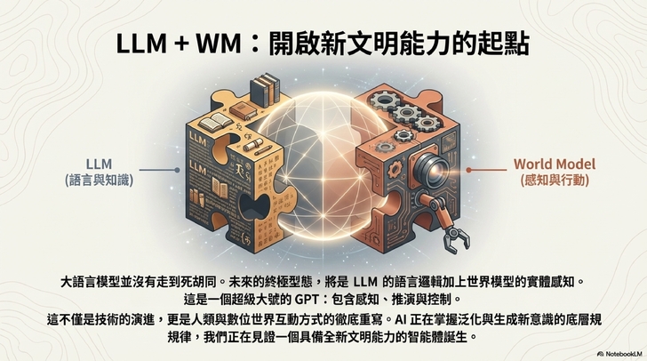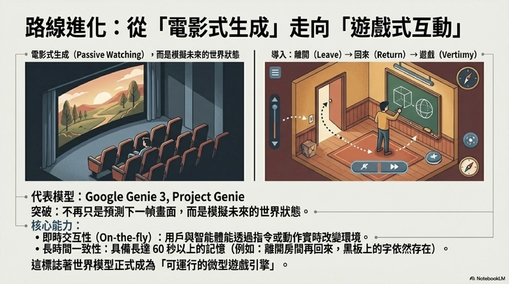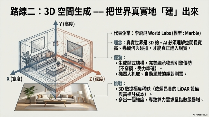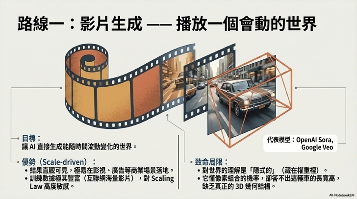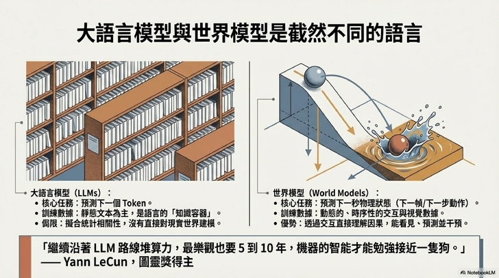 這裡的內容來自「硅谷101」的Youtube影片,是我個人絕對中文世界裡對於世界模型(World Model)最完整深入的整理,特別是對於目前許多不同的路線之間的關係比較,很有價值。我也用NotebookLM整理一個投影片檔如下,方便閱讀與吸收。