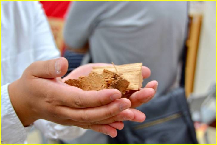 當大師用電動器具切割木頭,大塊小塊的木頭屑屑掉在地上的同時,竟飄來一陣陣的檀香味道 讓現場每個人不禁的深深吸了一口氣,頓時有種醒腦的感覺 !